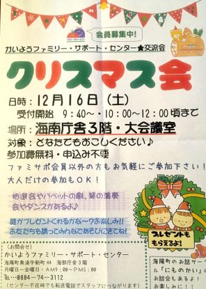 イベントを検索 当日 イベント (2017年 12月14日(木)) › イベント 日付ナビゲーション « 前の日 次の日 » 08:00 かいようファミサポ クリスマス会 2017年 12月14日(木) @ 08:00 - 17:00 海南庁舎3階大会議室, Japan 12月16日土曜日 9;40受付 10:00スタート 12:00終了 海南庁舎3階・大会議室にて どなたでもお... さらに詳しく » ガイド養成基礎講座 2017年 12月14日(木) @ 08:00 - 17:00 阿波海南文化村いきいき館, Japan 12月16日土曜日10:00〜17:00 12月17日日曜日10:00〜16:00 海南文化村いきいき館にて ... さらに詳しく » + Export Events