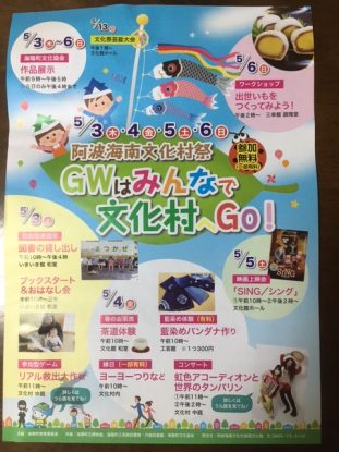 イベントを検索 当日 イベント (2018年 5月3日(木)) › イベント 日付ナビゲーション « 前の日 次の日 » 開催中 ¥200 IN MY HOUSE 2018年 1月12日(金) @ 12:00 - 2018年 5月28日(月) @ 17:00 タニのいえ, 海部郡海陽町大里馬谷3 Japan 10歳以下と80歳以上が撮るインスタにはあがらない日常写真展 1/12~5/28 開館日 月・金・土 12:0... さらに詳しく » 10:00 阿波海南文化村祭「GWはみんなで文化村へGo!」 2018年 5月3日(木) @ 10:00 - 2018年 5月6日(日) @ 16:00 阿波海南文化村, 5/3~6、文化村で楽しいイベントもりだくさん! 作品展示、おはなし会、リアル救出大作戦、縁日、藍染、コンサー... さらに詳しく » 14:00 笑福亭笑利落語会 2018年 5月3日(木) @ 14:00 - 15:30 大日寺, 海陽町宍喰浦423 Japan 宍喰地区にある『大日寺』で落語会か開かれます!! さらに詳しく » + Export Events