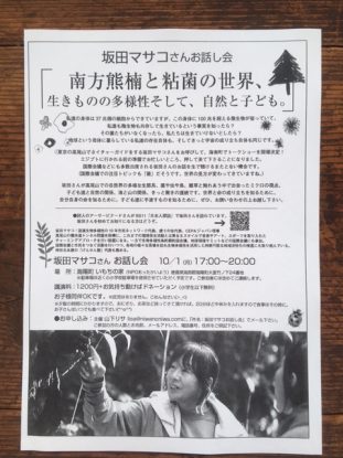 イベントを検索 当日 イベント (2018年 10月1日(月)) › イベント 日付ナビゲーション « 前の日 次の日 » 17:00 ¥1200 坂田マサコさんお話し会「南方熊楠と粘菌の世界」 2018年 10月1日(月) @ 17:00 - 20:00 いもちの家, 徳島県海部郡海陽町大里竹ノ下24番地 Japan 私たちの身体は37兆個の細胞からできていますが、この身体に100兆を超える微生物が宿っていて、私たちも微生物も... さらに詳しく » + Export Events
