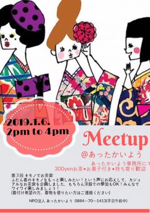イベントを検索 当日 イベント (2019年 1月6日(日)) › イベント 日付ナビゲーション « 前の日 次の日 » 終日 阿波の幕末刀 2018年 10月30日(火) - 2019年 1月27日(日) 海陽町立博物館, 海陽町四方原字杉谷73 Japan 幕末期に活躍をした刀工による作品が大集合。 展示作品:海部氏吉、吉川祐芳、長谷川吉廣、安芸一門、中島氏詮、横山... さらに詳しく » 14:00 ¥300 ミートアップ@キモノでお茶会 2019年 1月6日(日) @ 14:00 - 16:00 あったかいよう, 徳島県海部郡海陽町奥浦字堤ノ外32 Japan ふだん着のキモノを楽しむためのお茶会です。 もちろんキモノじゃなくてもOK。 みんなでワイワイ楽しみましょう~... さらに詳しく » + Export Events