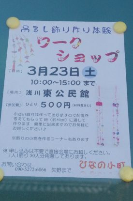 イベントを検索 当日 イベント (2019年 3月23日(土)) › イベント 日付ナビゲーション « 前の日 次の日 » 10:00 500 ワークショップ ~吊るし飾り作り体験~ 2019年 3月23日(土) @ 10:00 - 15:00 浅川 東公民館, 海陽町浅川ノドロ Japan 今年も浅川地区で「ひなの小町」が、3/3~4/3日まで開催されます。そして人気の“吊るし飾り作り体験”のワーク... さらに詳しく » 13:30 春の自然体験ツアー 2019年 3月23日(土) @ 13:30 - 16:30 阿佐海岸鉄道, Japan 海中観光船に乗ったり、タッチプールで魚の観察をしたり、お花見列車に乗ったり自然を満喫出来るツアー内容となってま... さらに詳しく » + Export Events