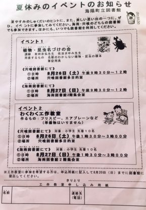 イベントを検索 当日 イベント (2017年 8月27日(日)) 日付ナビゲーション « 前の日 次の日 » 09:30 植物・昆虫名づけの会 2017年 8月27日(日) @ 09:30 - 12:00 海南図書館2階集会室, Japan 講師 有田忠弘先生 佐治まゆみ先生 さらに詳しく » 13:30 わくわく工作教室 2017年 8月27日(日) @ 13:30 - 15:00 海南図書館2階集会室, Japan 作るもの:フリスビー、エアプレーンなど 小学生 先着10名 さらに詳しく » + Export Events