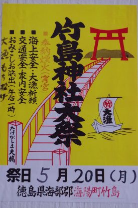 イベントを検索 当日 イベント (2019年 5月19日(日)) 日付ナビゲーション « 前の日 次の日 » 13:30 竹ヶ島神社祭り(宵宮) 2019年 5月19日(日) @ 13:30 - 21:00 竹ヶ島神社, 徳島県海部郡海陽町竹ヶ島 【宵宮祭】13:30~子供御輿/19:30~奉納花火大会 さらに詳しく » + Export Events
